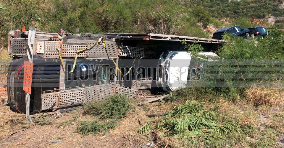 Volcadura dejó tres jóvenes lesionados en la carretera Victoria-Monterrey