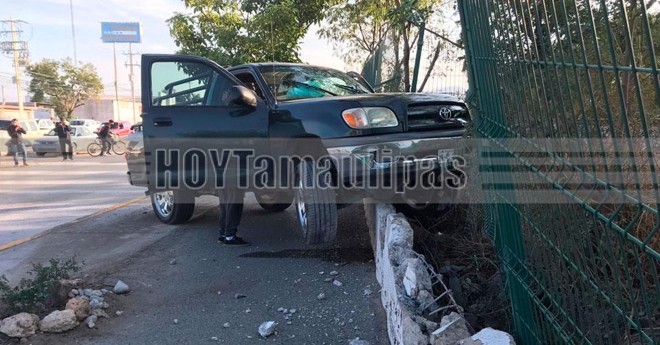 Conductor distraído se trepa a malla ciclónica en el Eje Vial de Ciudad Victoria