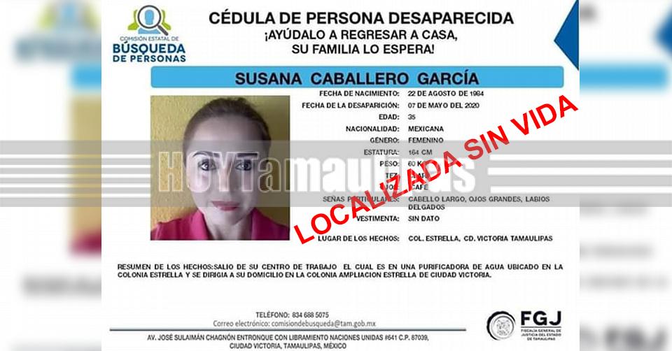 Localizan sin vida a Susana Caballero; desapareció hace seis meses en Ciudad Victoria