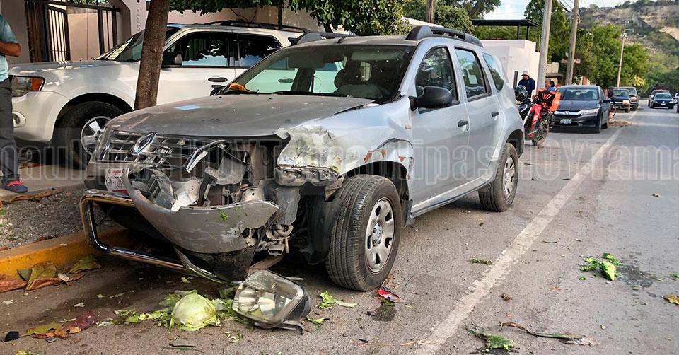 Camioneta cruza camellón y se impacta contra auto estacionado en Victoria; dos lesionados