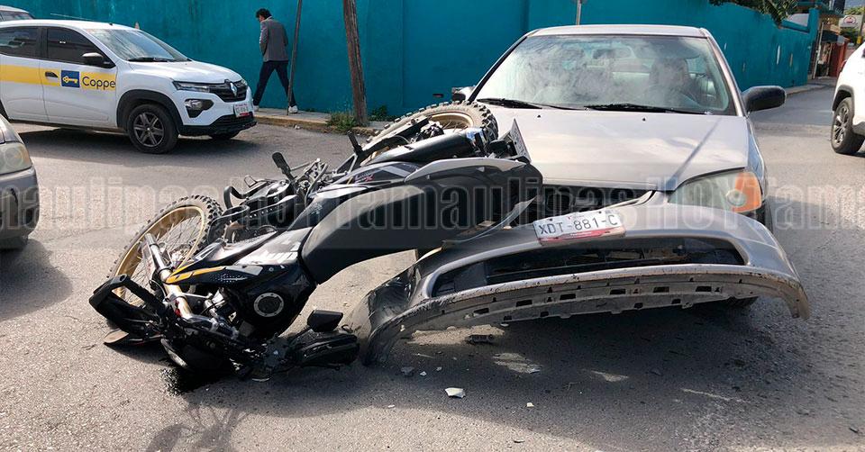 Motociclista resulta lesionado tras choque con automóvil en Ciudad Victoria