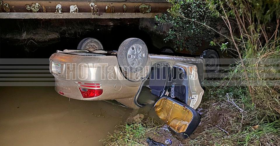 Ebrio conductor se duerme al volante y cae a lecho de río en Ciudad Victoria