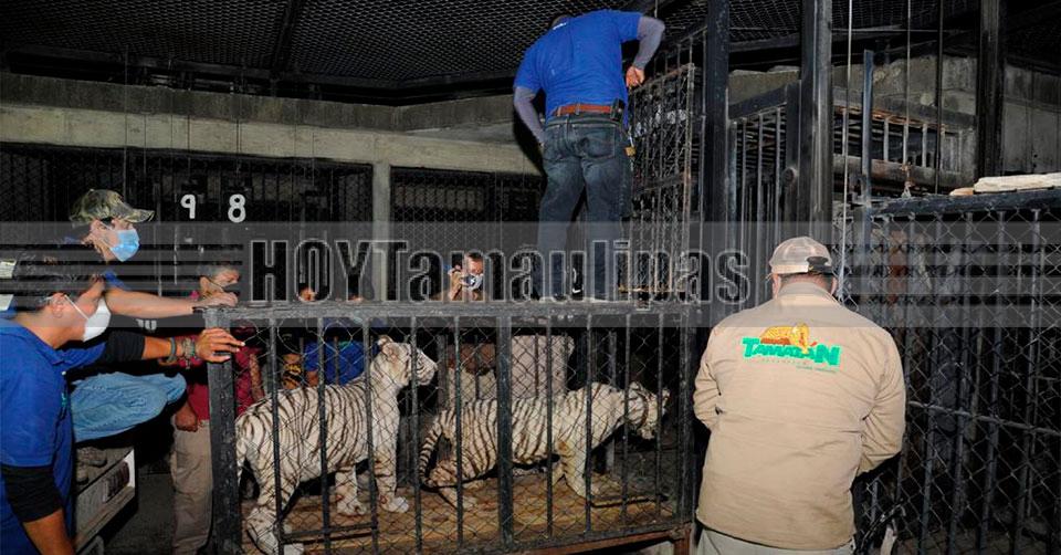Trasladan al zoológico los tigres de bengala asegurados en Matamoros