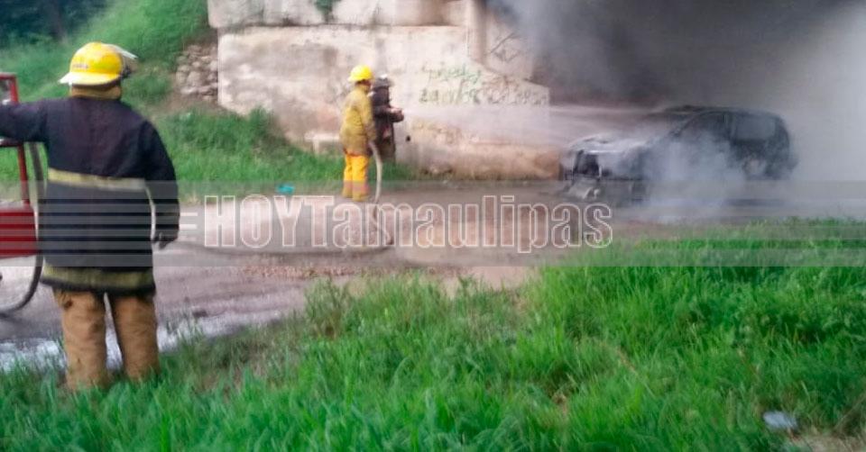 Incendio consume vehículo en la San Marcos de Ciudad Victoria