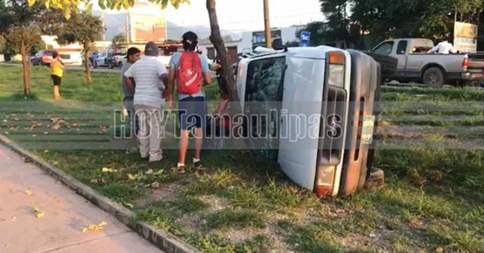 Conductora provoca choque y volcadura en libramiento de Ciudad Victoria
