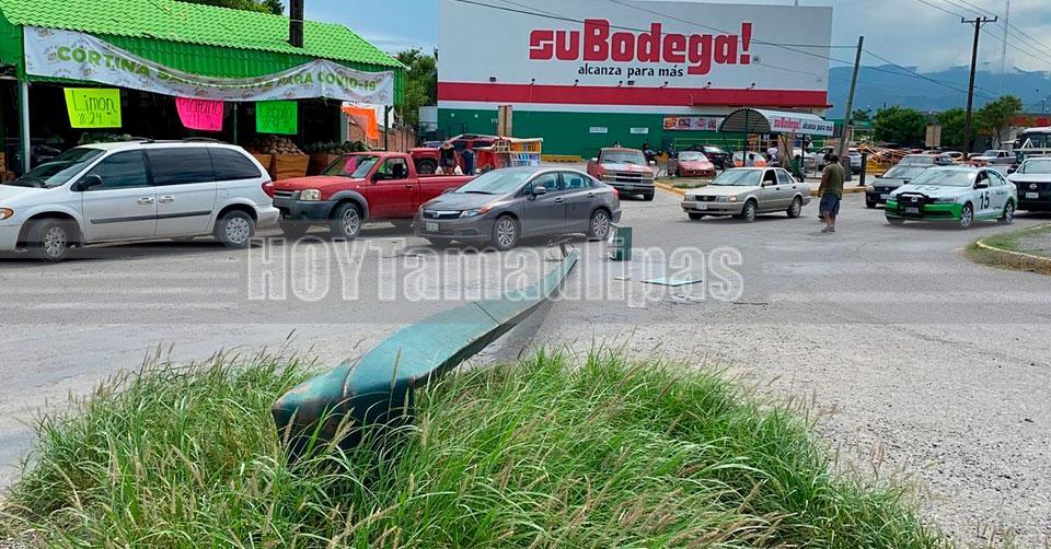 Conductor se estrella contra poste del C-4 en Ciudad Victoria