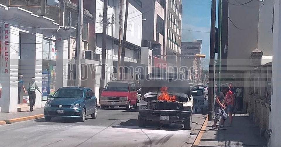 En Ciudad Vitoria: Pareja resulta ilesa tras incendiarse camioneta