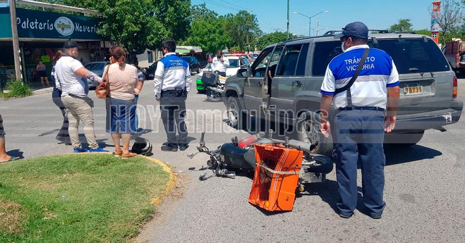 Bache tumba a motociclista y termina hospitalizado en Ciudad Victoria