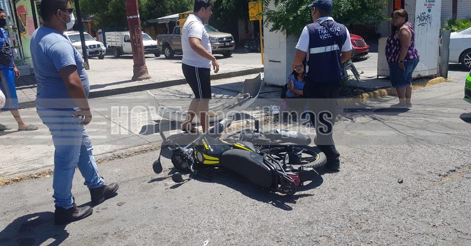 Taxista se les atraviesa a motociclistas y los derriba en Ciudad Victoria