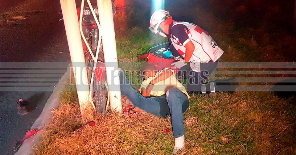 Motociclista entre la vida y la muerte tras chocar con luminaria al norte de Ciudad Victoria