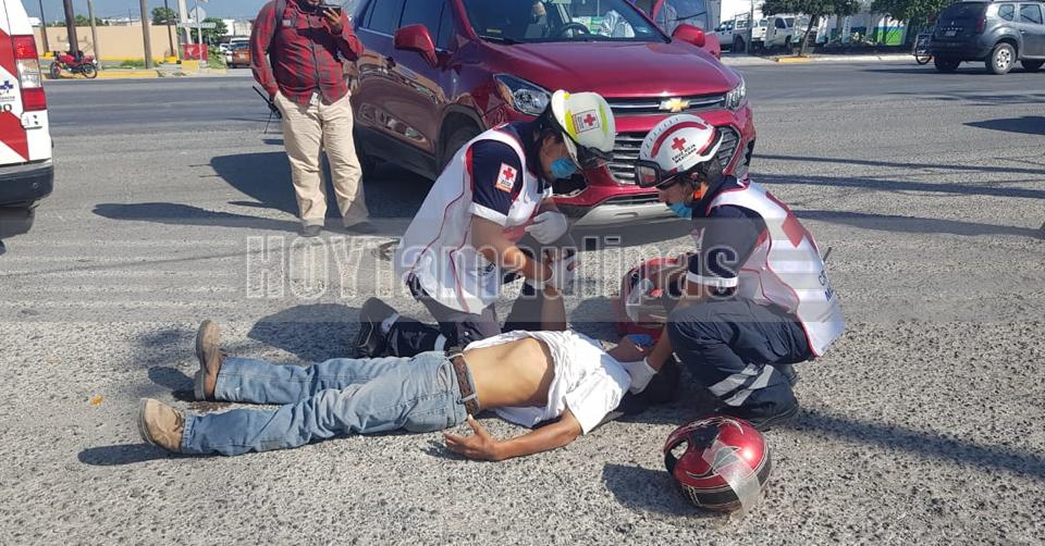 Motociclista lesionado por chocar contra camioneta en Ciudad Victoria