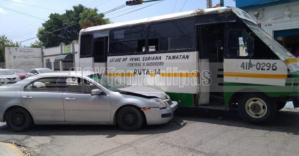 Omite alto y se estampa contra microbús en Ciudad Victoria