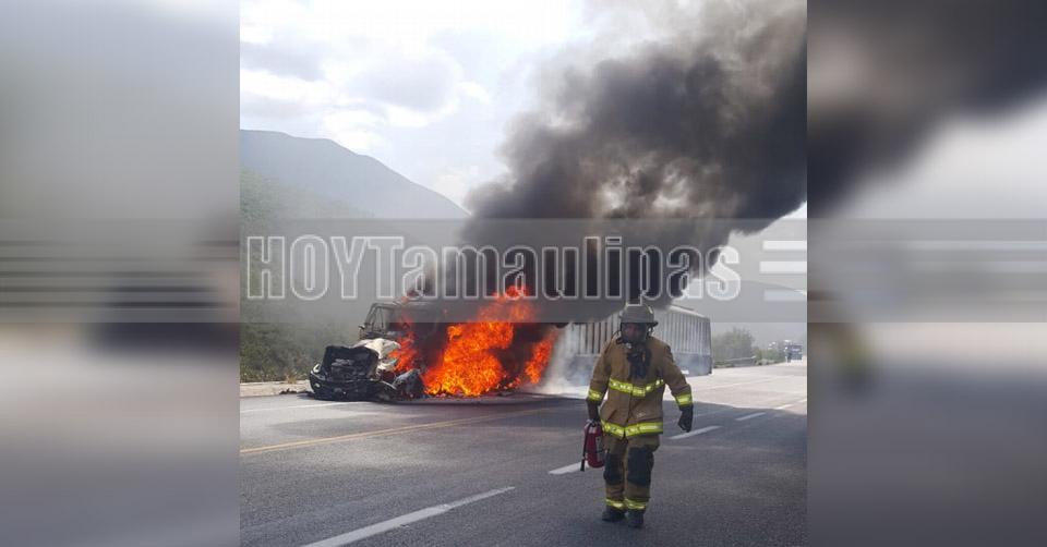 Se incendia tráiler con 25 toneladas de sorgo en la Tula-Victoria