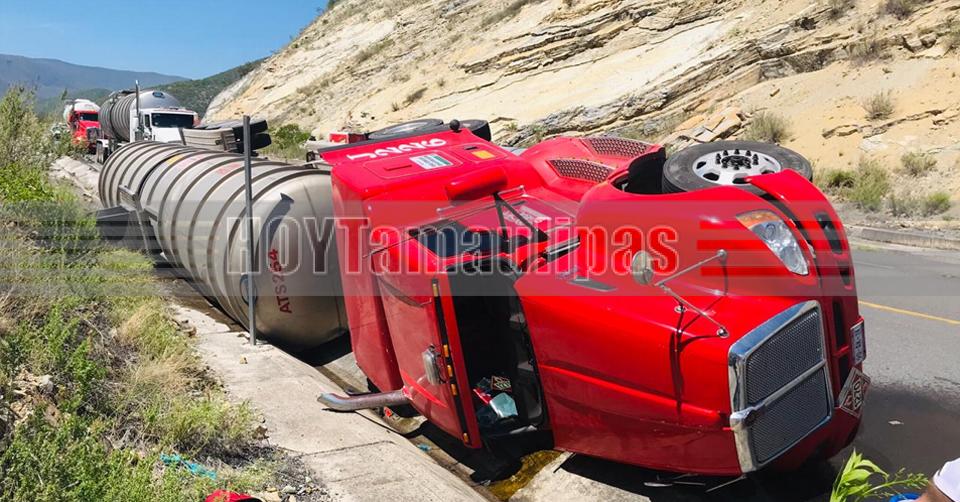 Vuelca pipa con 30 mil litros de aceite de petróleo en la Rumbo Nuevo