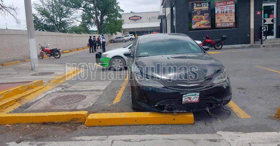 Se distrae con el celular y tumba postes en estacionamiento de Ciudad Victoria