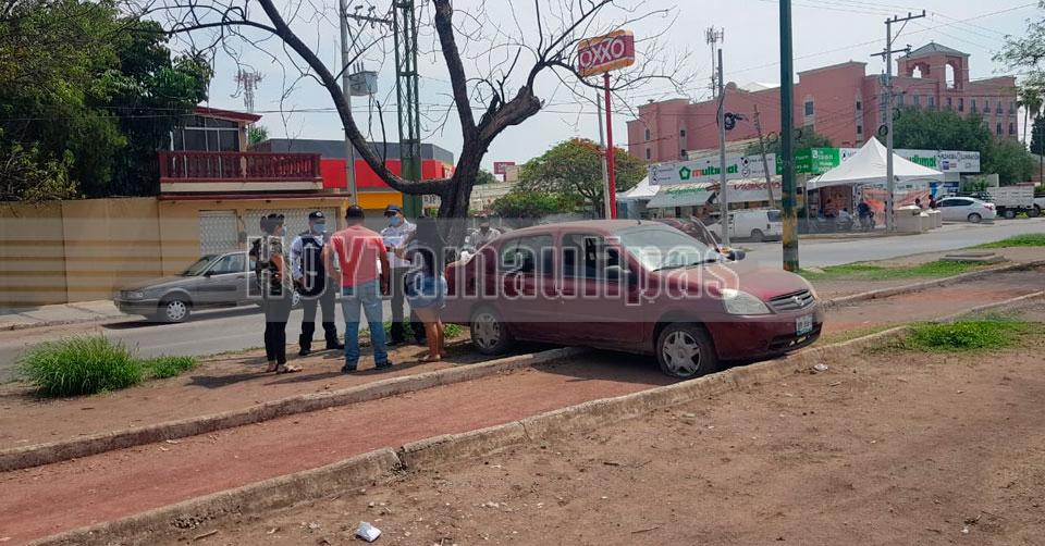 Ebrio conductor choca y en la huida se “ensarta” con palmera en Ciudad Victoria