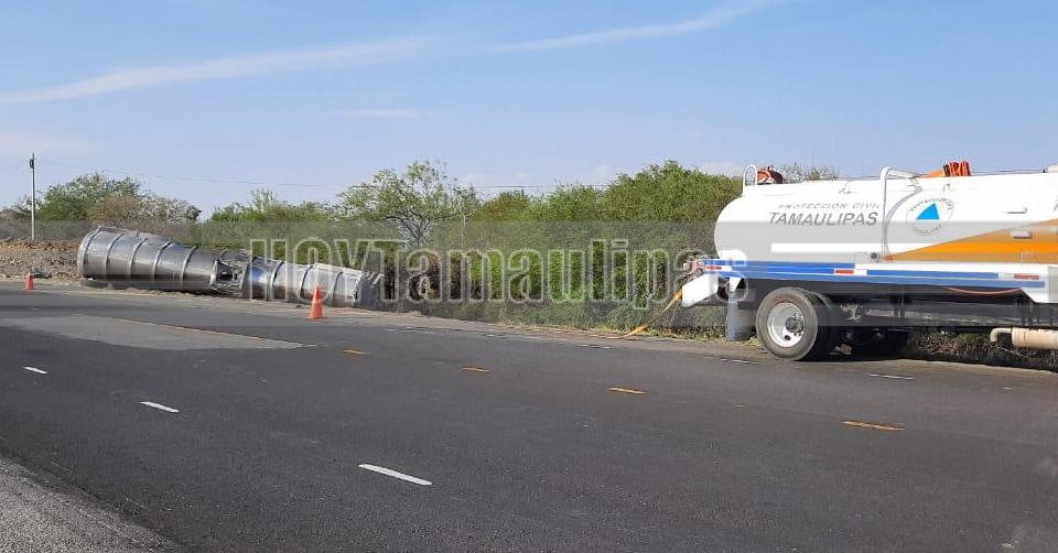 Vuelca pipa cargada con diésel en la carretera Zaragoza-Victoria