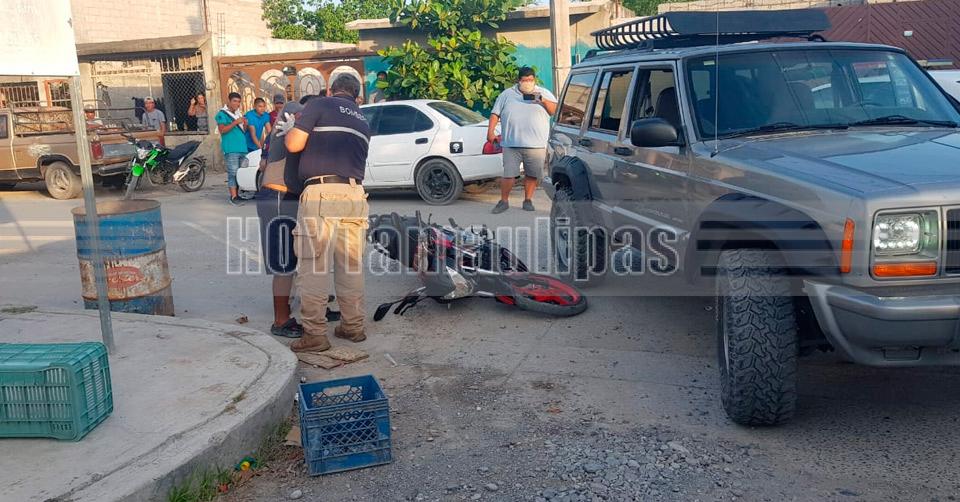 Motociclista trata de rebasar a camioneta y choca en Ciudad Victoria