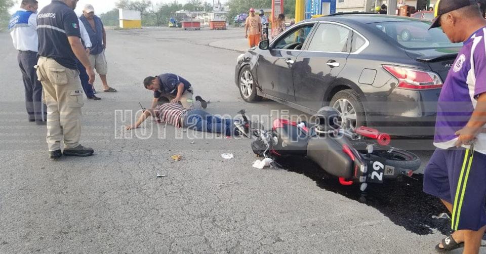 Motociclista llevaba el casco en la mano tras accidente en Ciudad Victoria