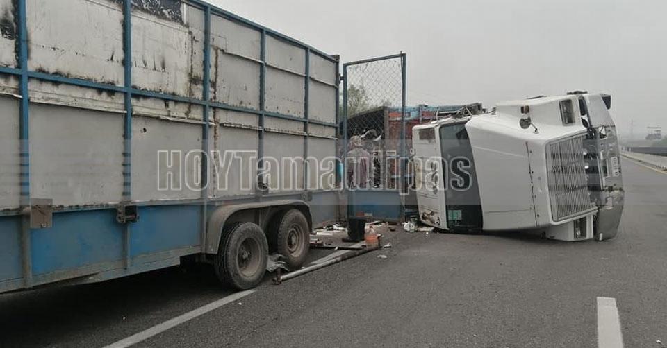 Se salvan de morir tras volcadura en la carretera Victoria-Soto La Marina