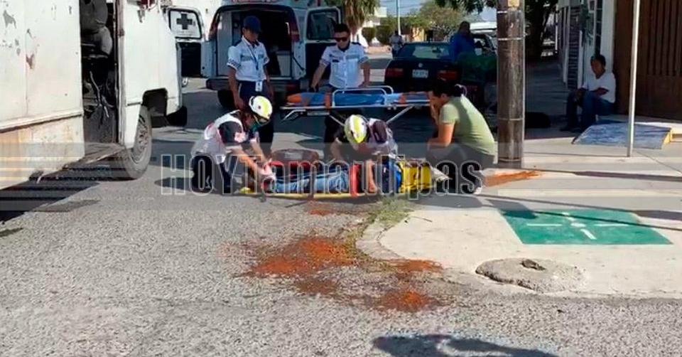 Derrapa moto frente a la Central de Ciudad Victoria, termina en IMSS