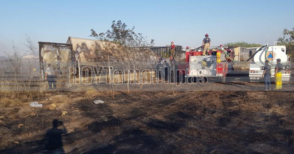 Incendio se sale de control y consume cajas de tráileres en Ciudad Victoria