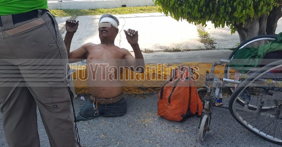 Abuelito se dirigía a su trabajo y se lesiona al caerse de su propia altura en Ciudad Victoria