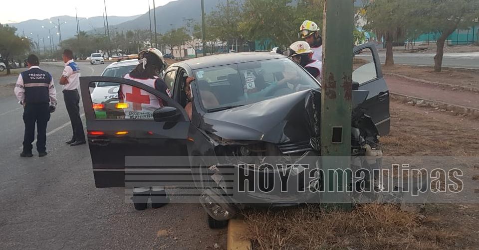 Ebrio resulta lesionado al chocar con luminaria en Ciudad Victoria
