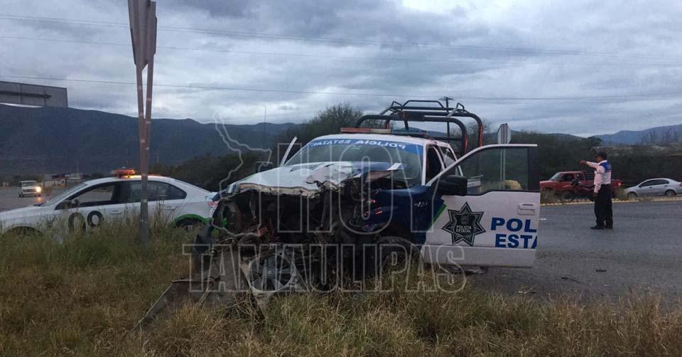 Accidente vial deja dos policías lesionados en entronque de Victoria