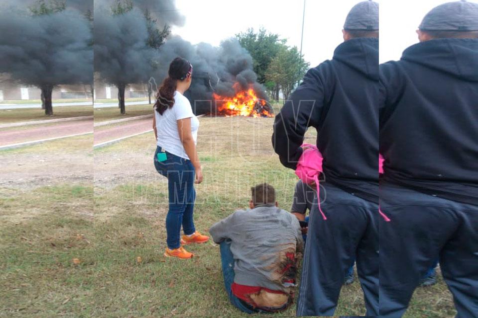 Salvan a joven de entre las llamas en Victoria, volcó en su BMW