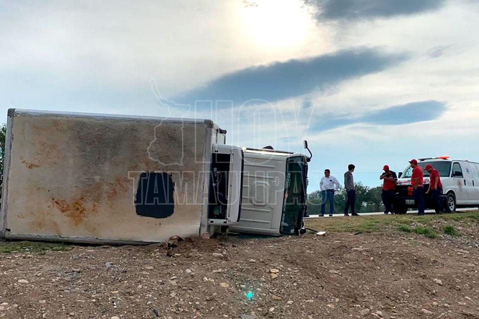 Vuelca camión que transportaba carnes frías en la carretera Zaragoza-Victoria