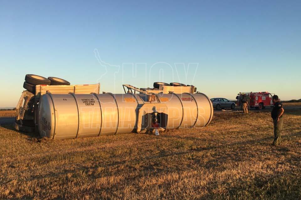 Vuelca auto tanque con 31 mil litros de gasolina en la Zaragoza-Victoria
