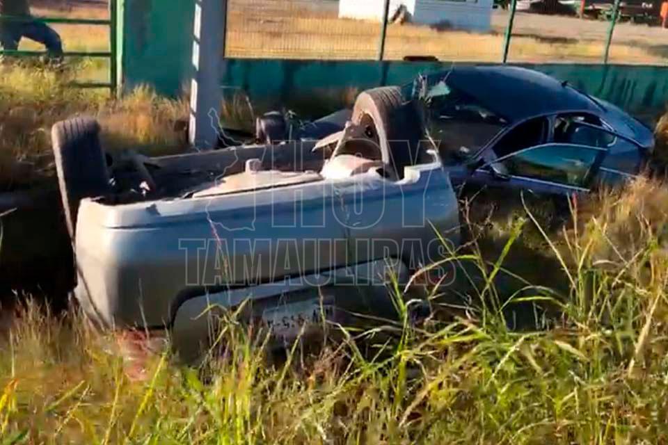 Choque con volcadura deja tres lesionados en libramiento de Victoria