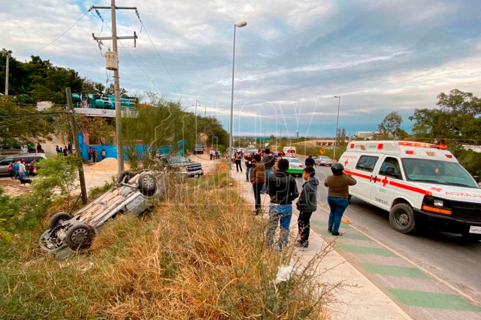 Acelerado jovencito vuelca y cae a barranco en Victoria: hay tres lesionados