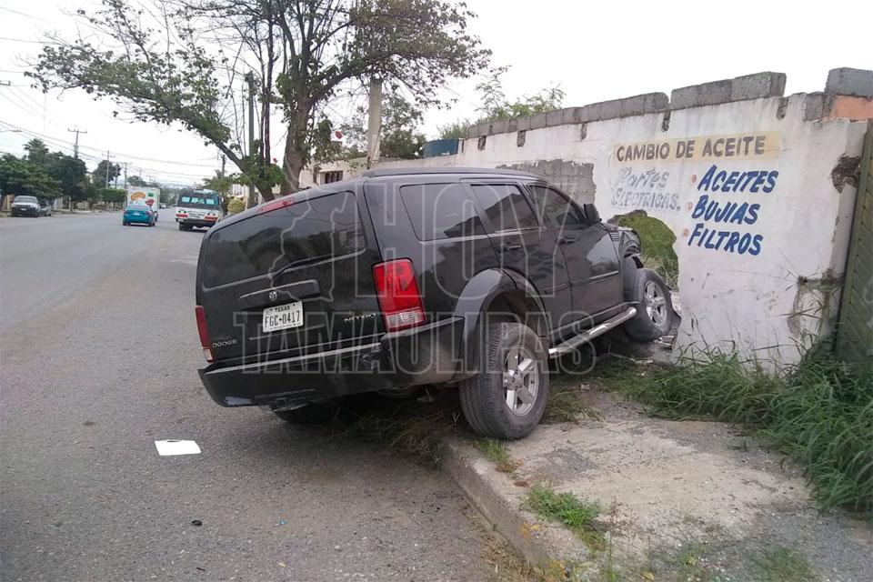Conductora estrella su camioneta contra barda y huye del lugar en Victoria