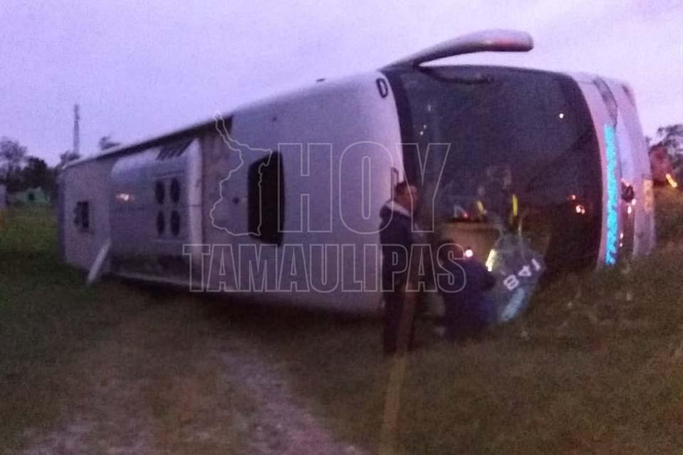 Volcadura de autobús Transpais deja cinco lesionados en la carretera Victoria-Matamoros