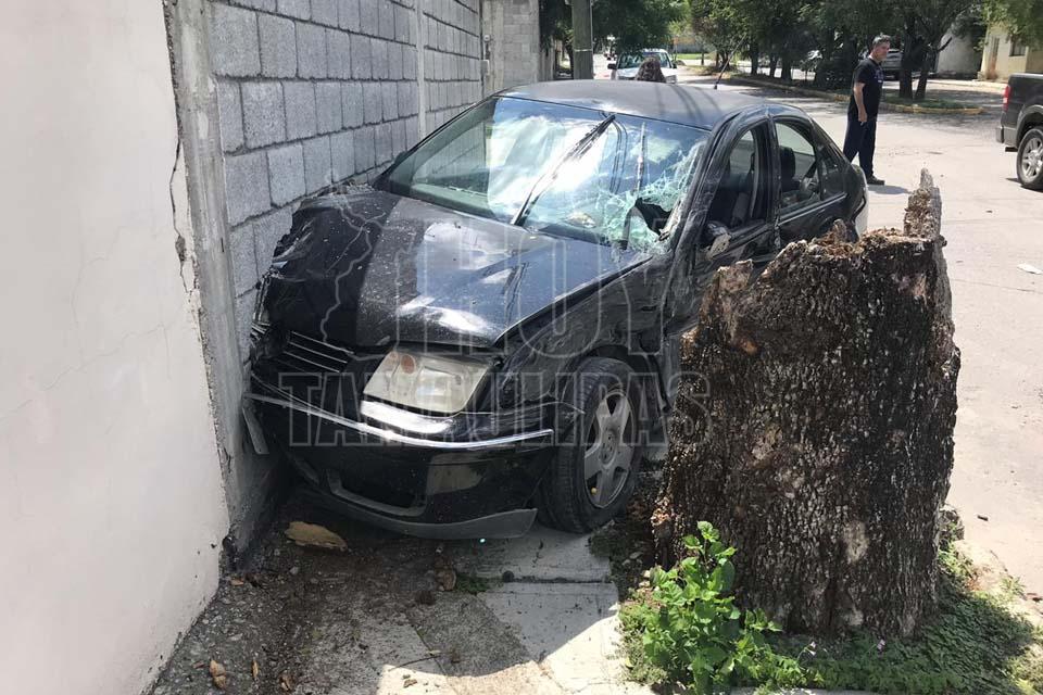 Atraviesa barda después de ser chocado en Ciudad Victoria