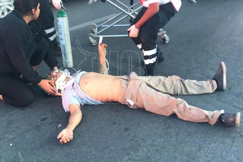 Motociclista lesionado al estrellarse contra camioneta en Victoria