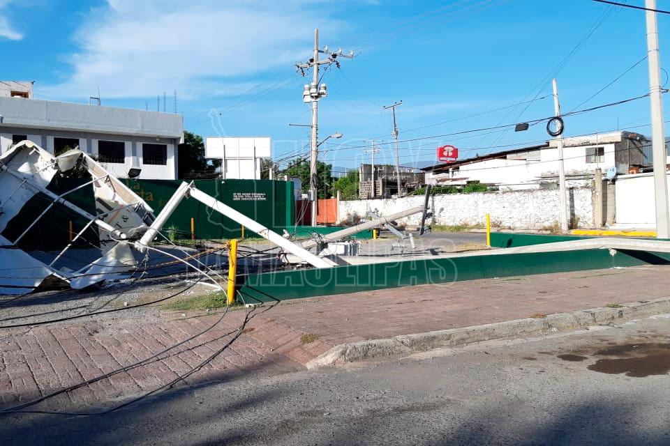 Trailero provoca caos; derriba cables y postes de luz en Ciudad Victoria