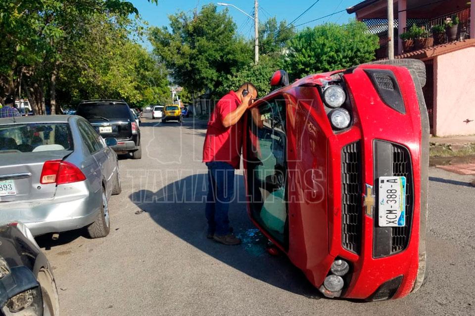 Una lesionada al volcar carro tras chocar a otro en Ciudad Victoria