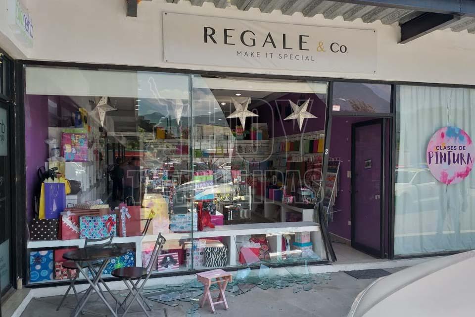 Conductora distraída causa daños a negocio de regalos en Ciudad Victoria