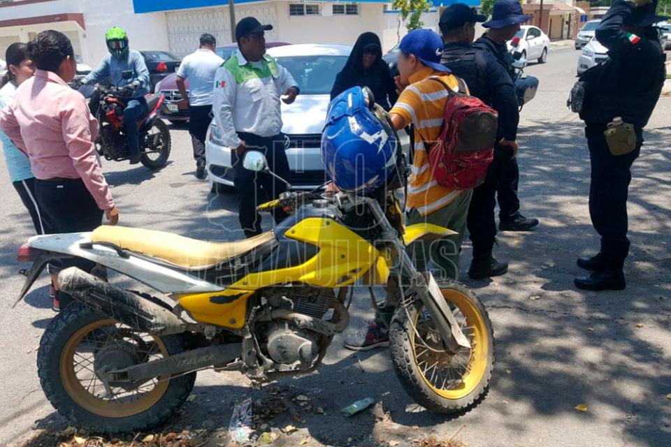 Motociclista omite alto y choca contra carro en Ciudad Victoria