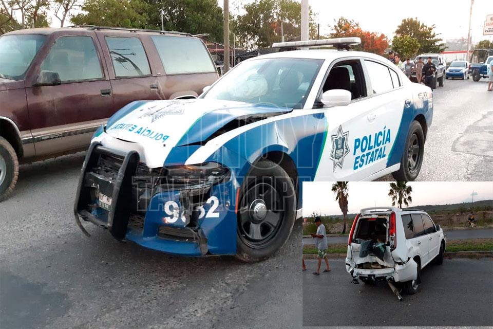 Policías estatales pierden control de patrulla y chocan en Ciudad Victoria