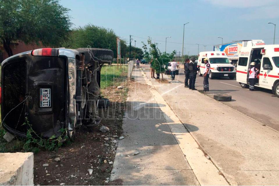 Choque con volcadura deja dos lesionados en la Victoria-Monterrey