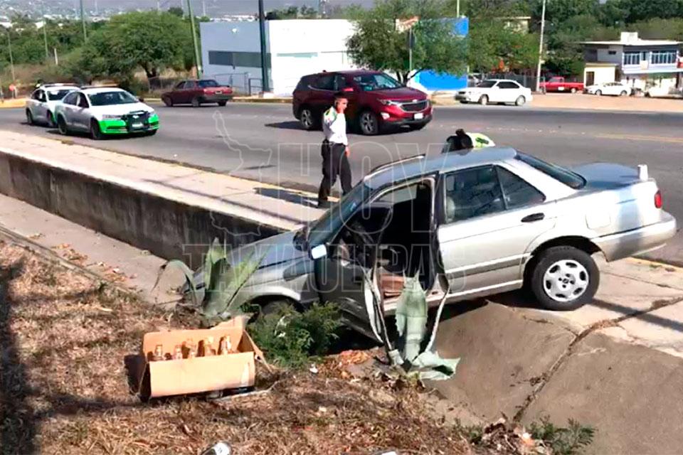 Ebrio conductor cae a dren pluvial y termina en el hospital