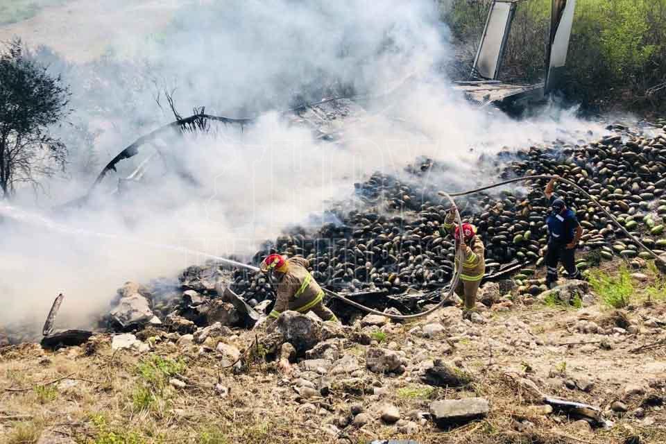 Fuego consume tráiler y toneladas de papaya en la Zaragoza-Victoria