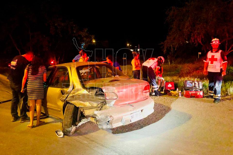 Derrapa automovilista y choca en Ciudad Victoria; dos lesionados