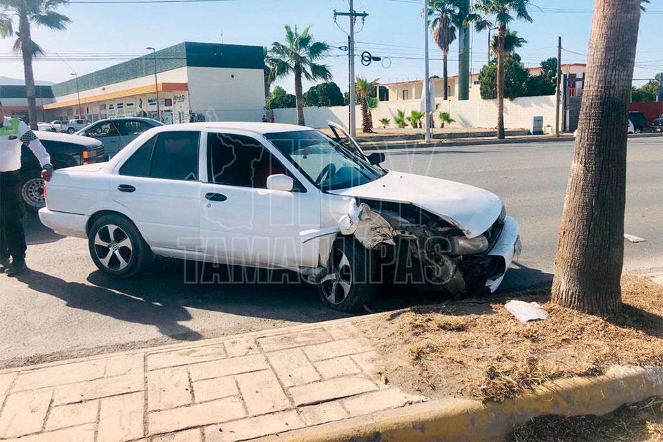 Se distrae con el celular y choca contra dos palmeras en Ciudad Victoria