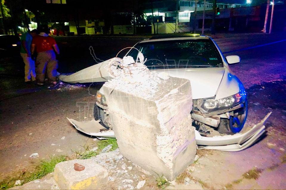 Ebrio choca y derriba poste de Telmex en Ciudad Victoria