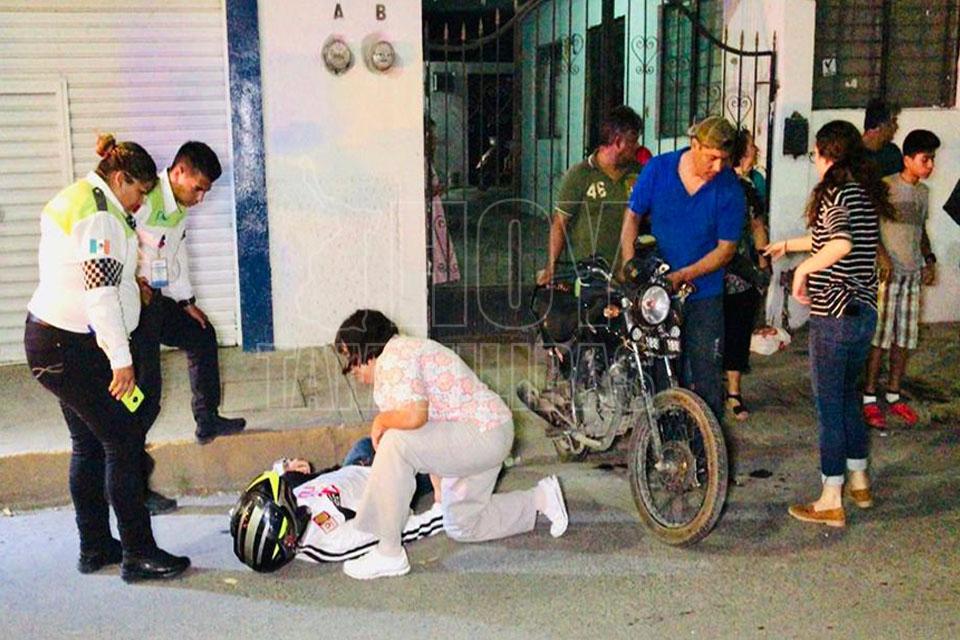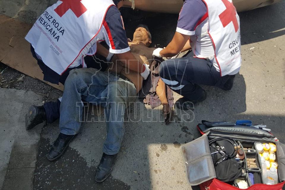 Derrapa motociclista tras pasar encima de una botella resultando lesionado en Ciudad Victoria